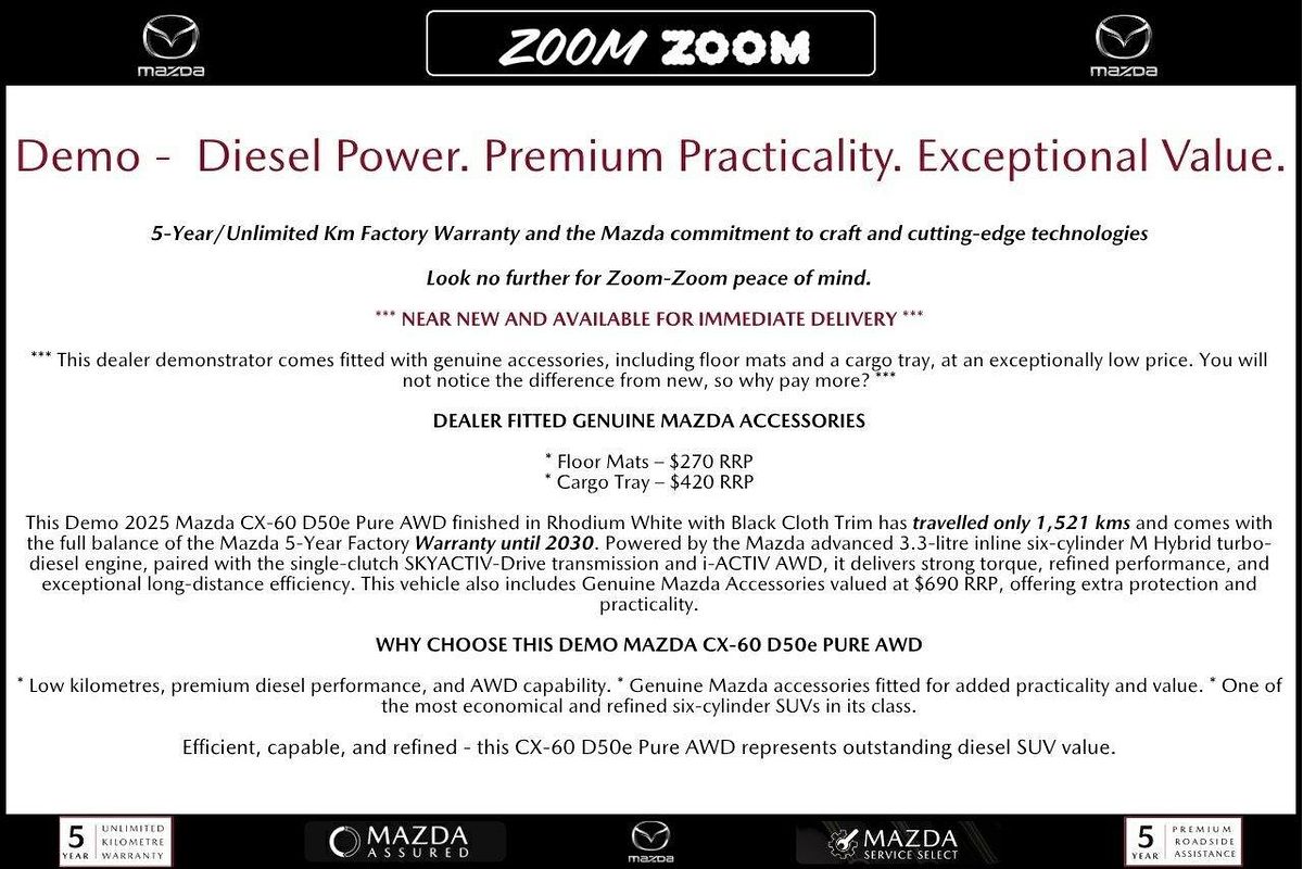2025 Mazda CX-60 D50e Pure KH Series Auto i-ACTIV AWD