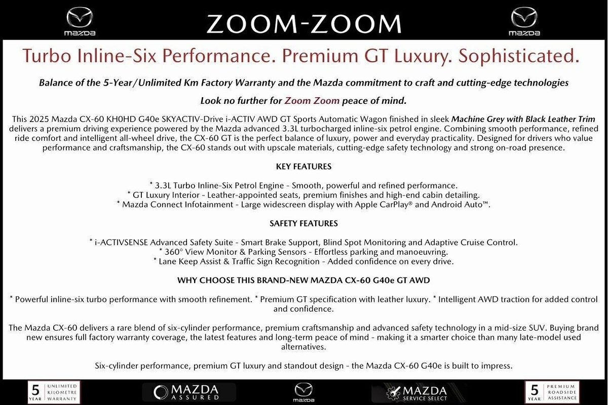 2025 Mazda CX-60 G40e GT KH Series Auto i-ACTIV AWD